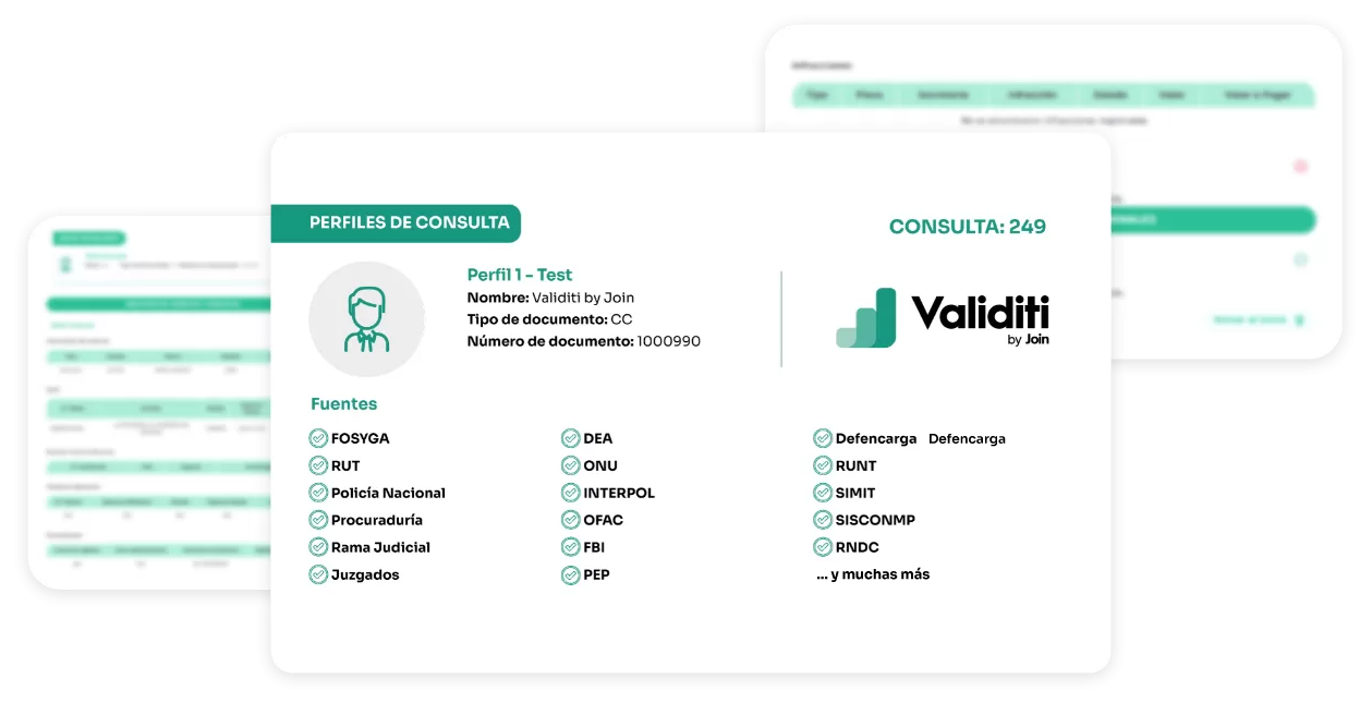 Validiti automatiza la verificación de personas, vehículos y empresas en bases de datos nacionales e internacionales. Entrega resultados en segundos, optimizando tiempos, costos y riesgos en áreas como talento humano, logística y cumplimiento.